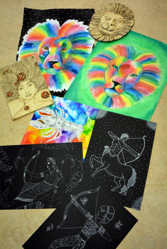 Fotogalerie Leden 2020 – Projekt: znamení zvěrokruhu. Práce žáků výtvarného oboru pod vedením p. uč. Lucie Boháčové. Fotogalerie
